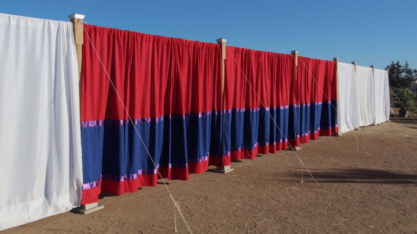 The “court” surrounds the actual holy and holy of holies. It appears this represents catechumens. Bronze sockets indicate that God is purifying them by grace and silver indicates the goodness of their humanity, just as that of Christians. The pillars are not made of acacia wood, for those outside the Church do not have blamelessness which is imparted to those who are in Christ’s Body. The dimensions follow that of the actual holy and holy of holies, carrying the same sort of significance.